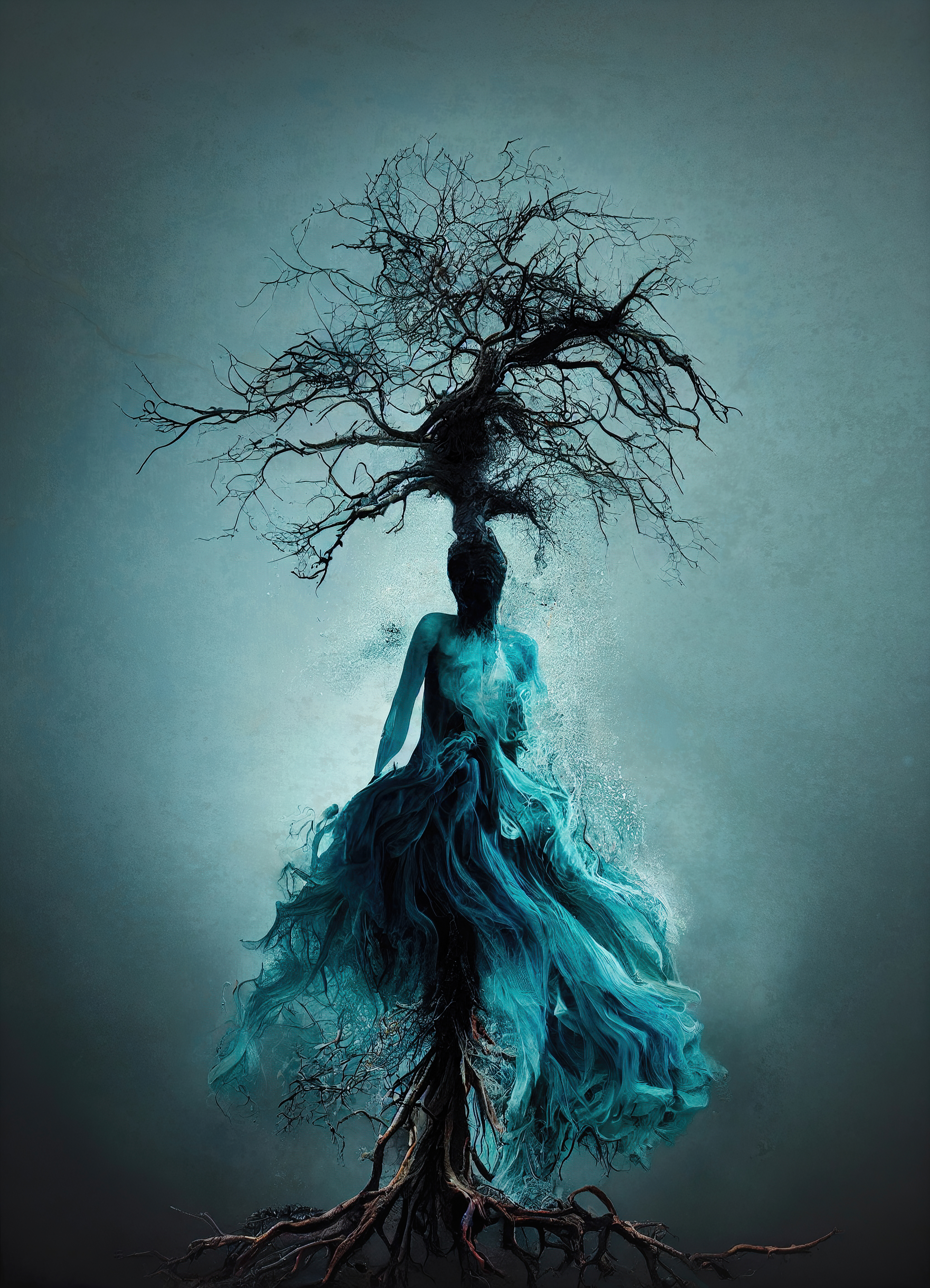 My inspiration for this artwork comes from life and death; all living things are tied together, created from the same thing. In death, we go back to the earth, sea, sky, space. We become part of the nature that in life we feel so separate from.