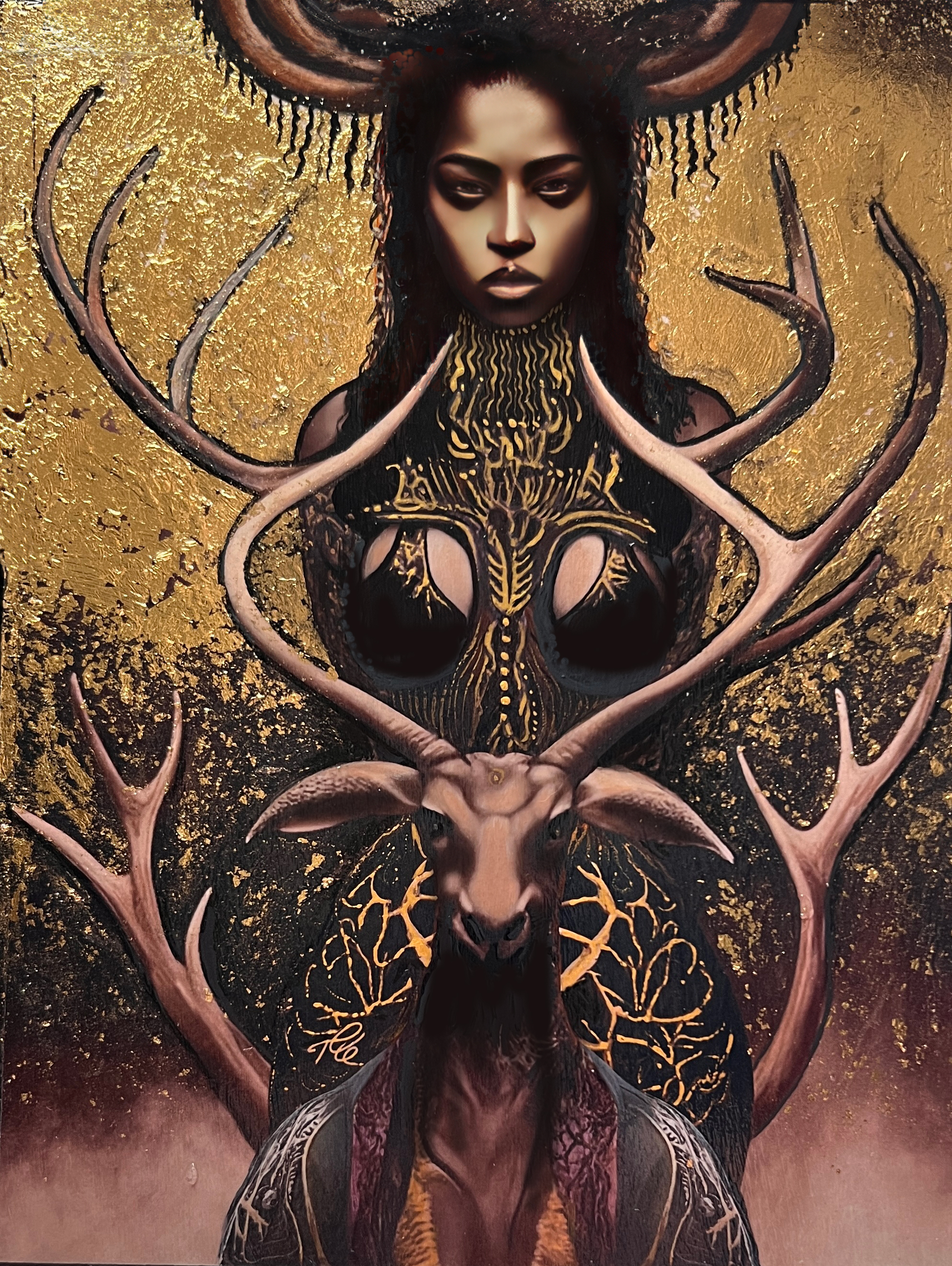 Hand painted with gold leaf in a cigar box combined with augmented reality