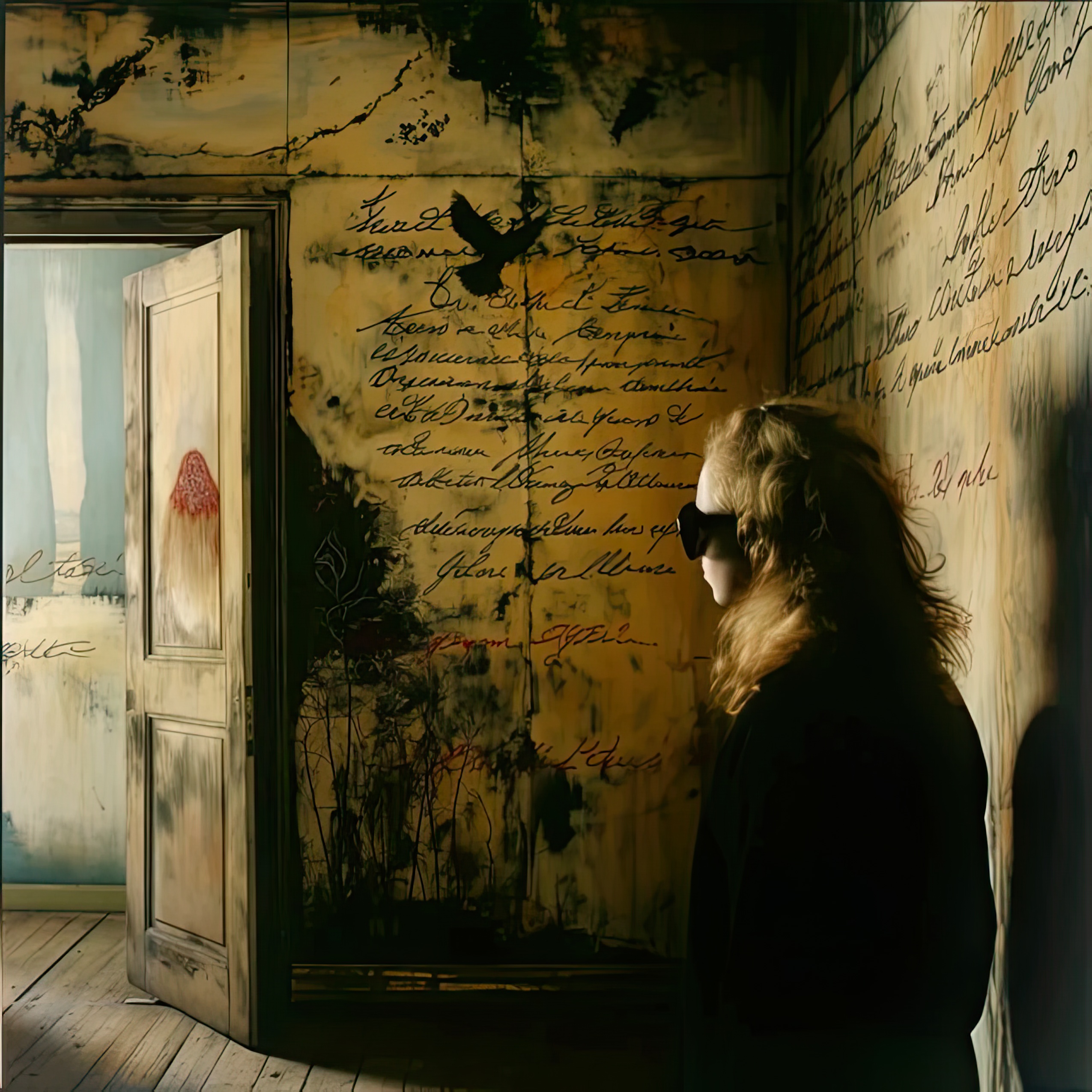 “"The Writing is on the Wall" is created using several AI platforms including Midjourney and Emergent Properties. ”