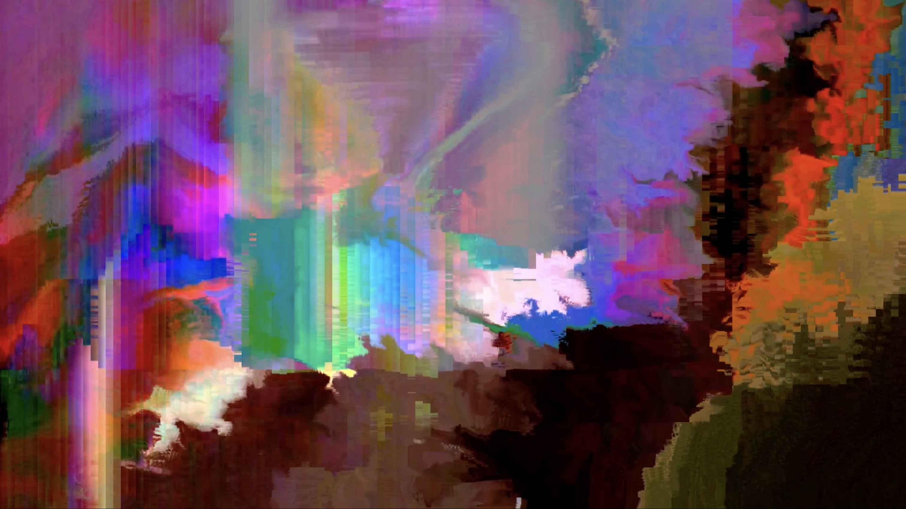 “21 sec footage of light leakage, datamoshed to paint its artifacts. Sounds from AI perception of stills. AR activated image via Artivive app.”